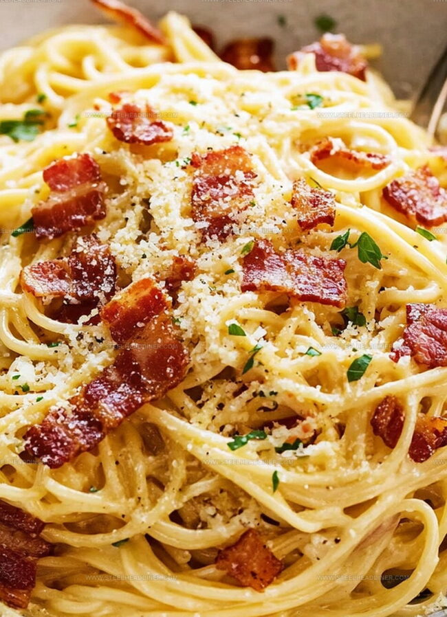 Crispy bacon bits dance through silky egg-coated noodles, creating a Roman-style dish that whispers culinary magic.