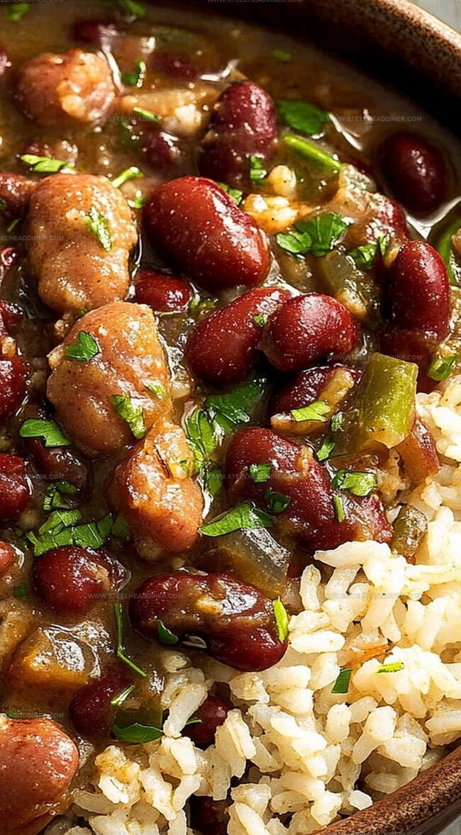 Spoon the rich, creamy red beans over a bed of fluffy white rice. Sprinkle fresh green onions on top for a burst of color and flavor.