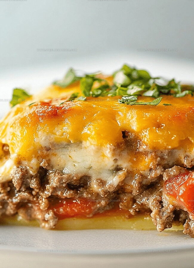 Layers of beef, peppers, and cheese create a memorable meal perfect for hungry crowds.