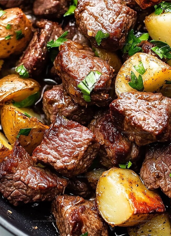Garlic butter beef bites & potatoes bring tender meat and hearty potatoes together in one comforting slow cooker meal. Savory flavors meld perfectly, creating a simple dinner that satisfies hunger and delights palates.