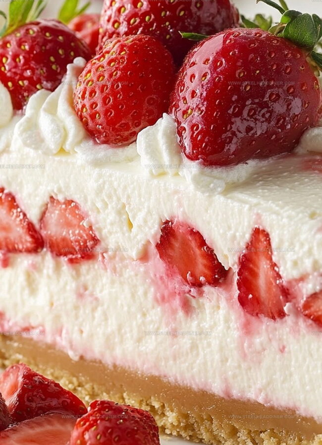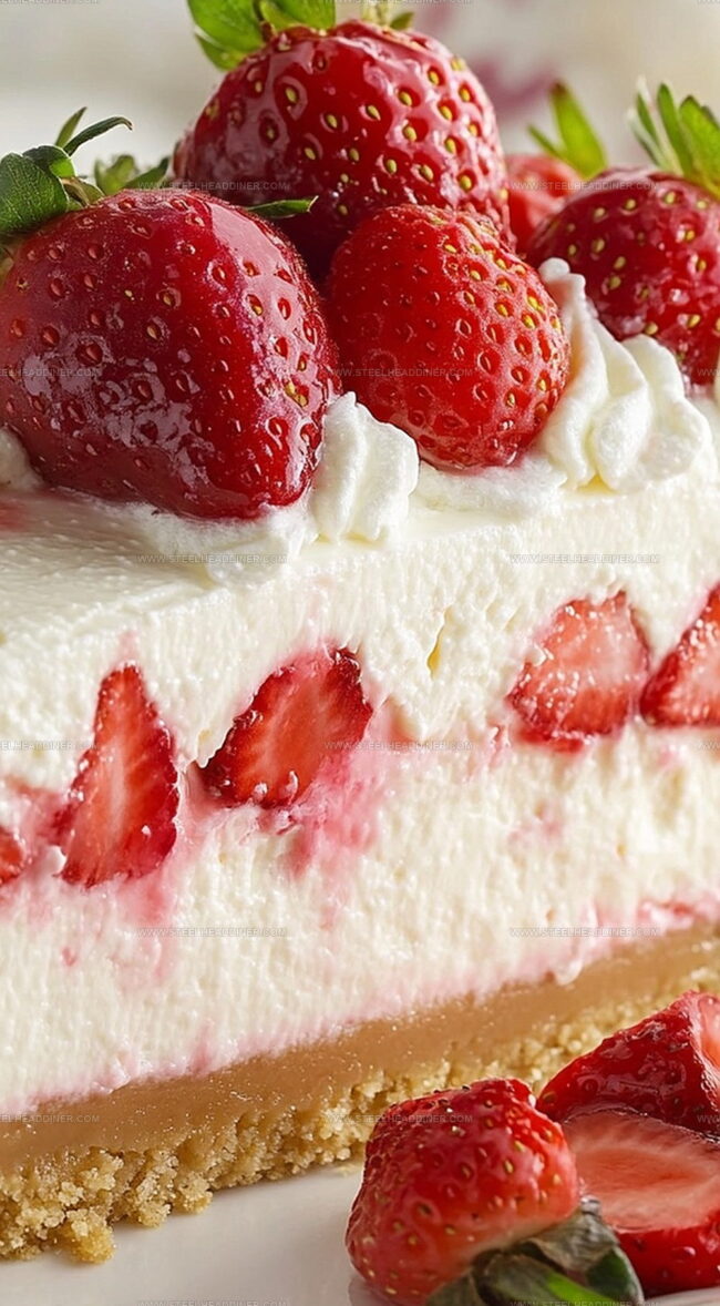 Delicate strawberries nestle perfectly between smooth cream cheese and buttery graham cracker crust.