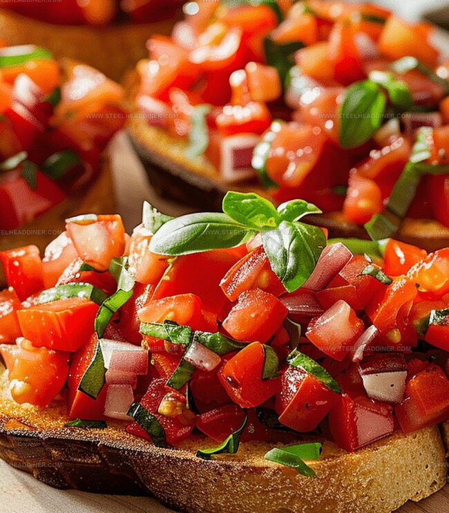 Crisp bread becomes magical when you sprinkle fresh bruschetta ingredients across its golden surface.