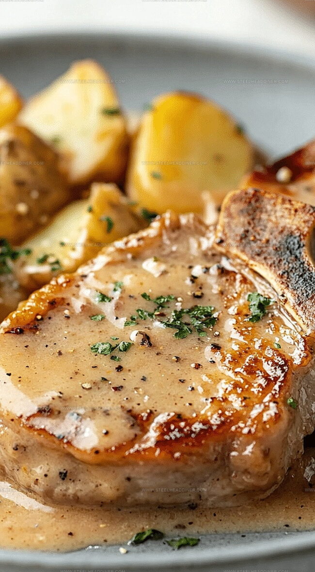 - Warm olive oil in a robust skillet, then expertly sear the seasoned pork chops for 3-4 minutes on each side until they develop a gorgeous golden-brown crust.