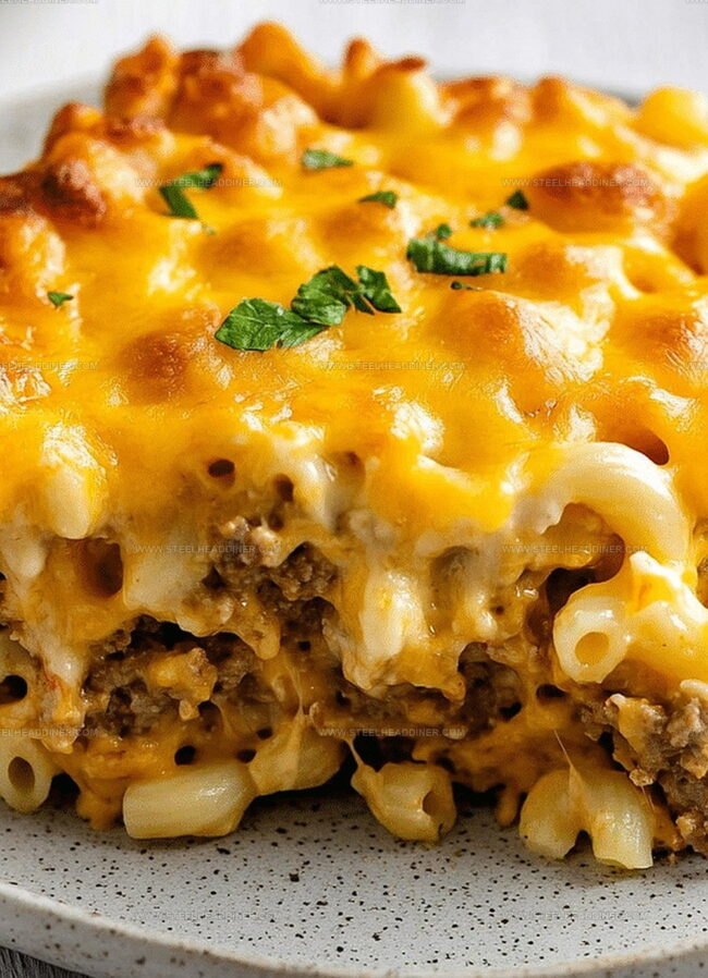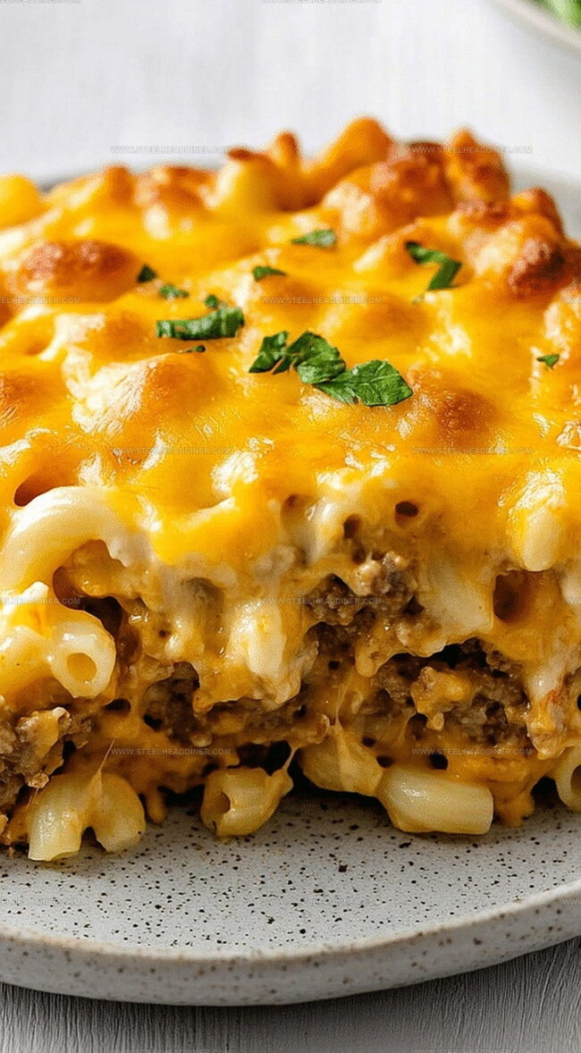 Classic comfort mac and cheese meatloaf casserole blends hearty American dinner favorites into one satisfying dish. Cheese-lovers will savor this creamy, meaty creation that brings family meals to delightful new heights.