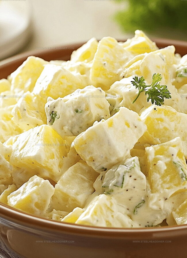 Signature cheesy potato salad blends creamy textures with zesty flavors from classic ingredients. Rich and comforting, this dish connects familiar tastes that pull you into a memorable culinary experience.