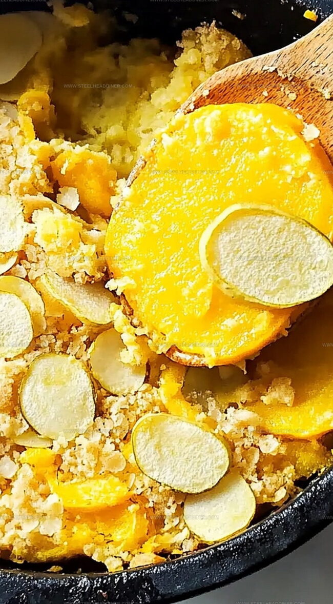 Pour the squash mixture into the prepared baking dish. Sprinkle a generous layer of:Spread evenly across the top for a delightful crunchy topping.