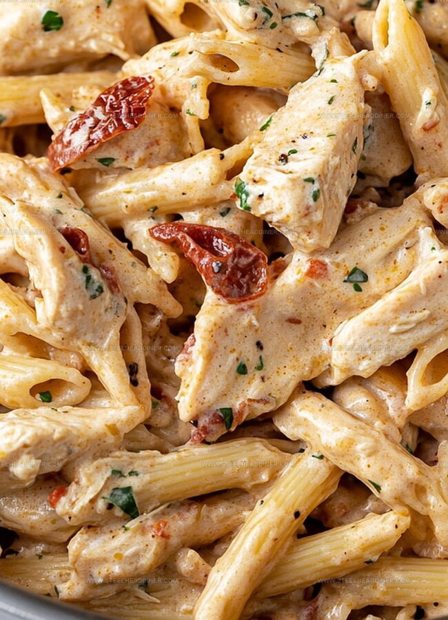 Replace chicken with plant-based chicken alternatives or add more sun-dried tomatoes and mushrooms for extra flavor and protein.