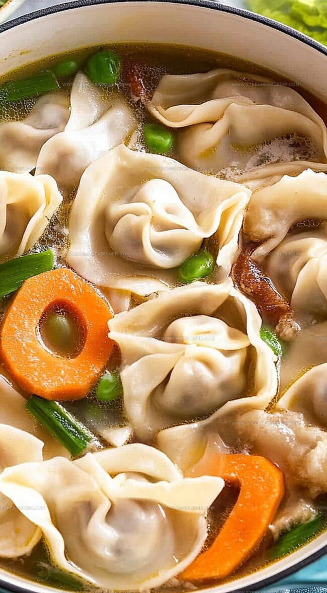 Delicate parcels of seasoned meat nestle in a fragrant broth that whispers of Asian culinary traditions.