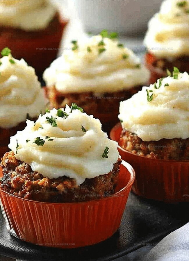 Mini meatloaf muffins with creamy potato frosting deliver comfort from hearty home kitchens. Meat blends perfectly with herbs while potato topping crowns each delectable bite you’ll savor.