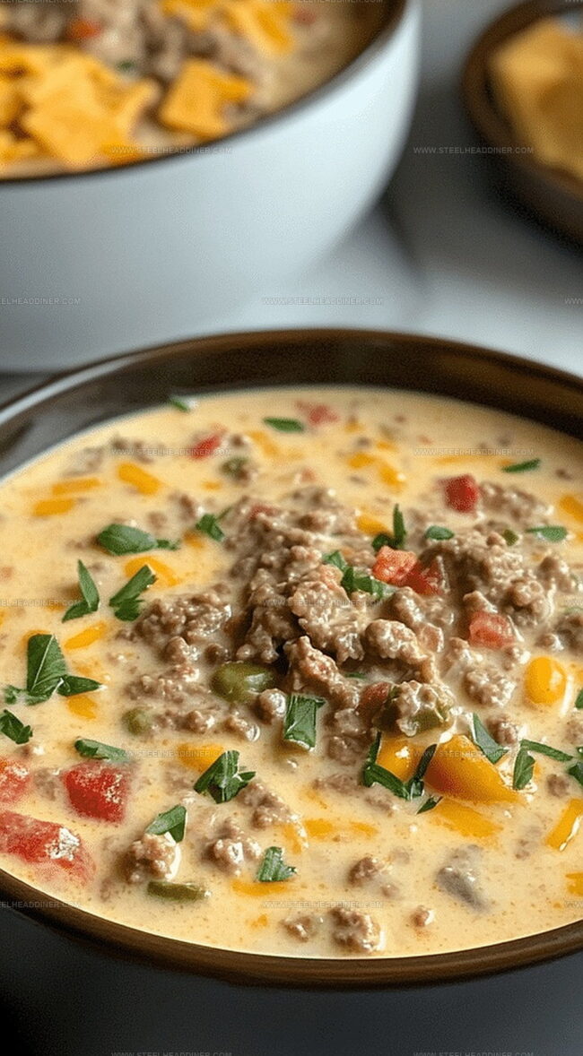 Hearty cheeseburger soup delivers classic American comfort in one creamy bowl. Midwest-inspired ingredients blend perfectly for a satisfying meal that warms you to the core.
