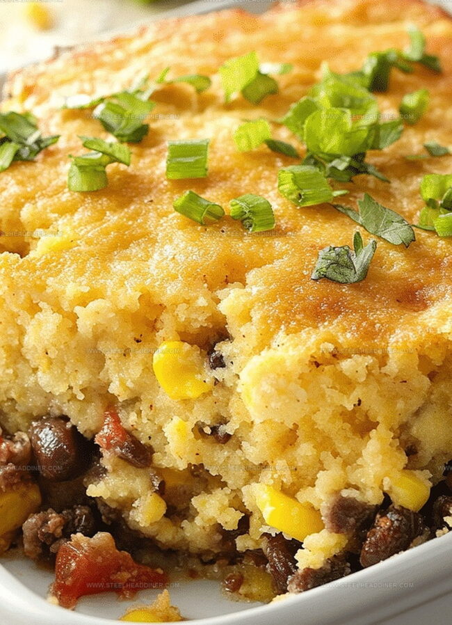 Soft cornbread topping adds a golden, crispy crown that makes mouths water instantly.