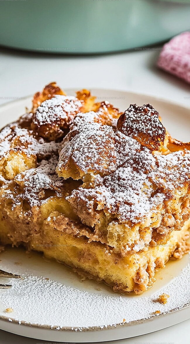 Soft, pillowy chunks soak up rich egg mixture, creating a dreamy texture that melts in your mouth.