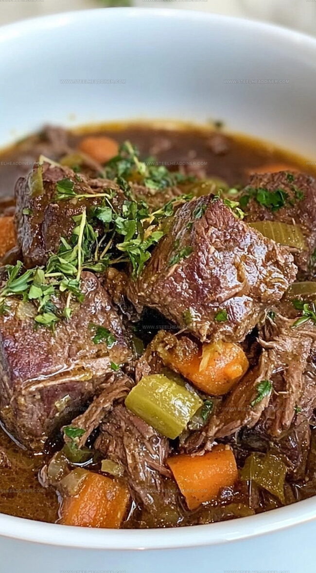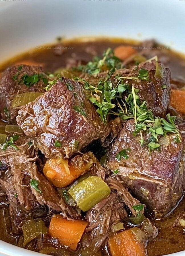 Wine-soaked beef melts into tender chunks that whisper stories of rustic kitchens and slow-cooked traditions.