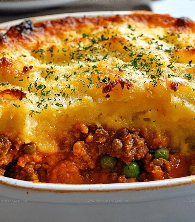 Hearty pumpkin shepherd’s pie blends rustic British comfort with autumnal American charm. Creamy mashed pumpkin tops savory ground lamb, creating a nourishing meal you’ll crave during chilly evenings.