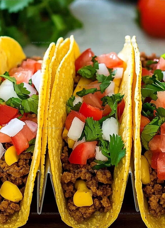 Mexican street-style crispy ground beef tacos bring authentic flavor to home kitchens. Crunchy shells, seasoned meat, and fresh toppings create a simple yet satisfying meal you can easily master.