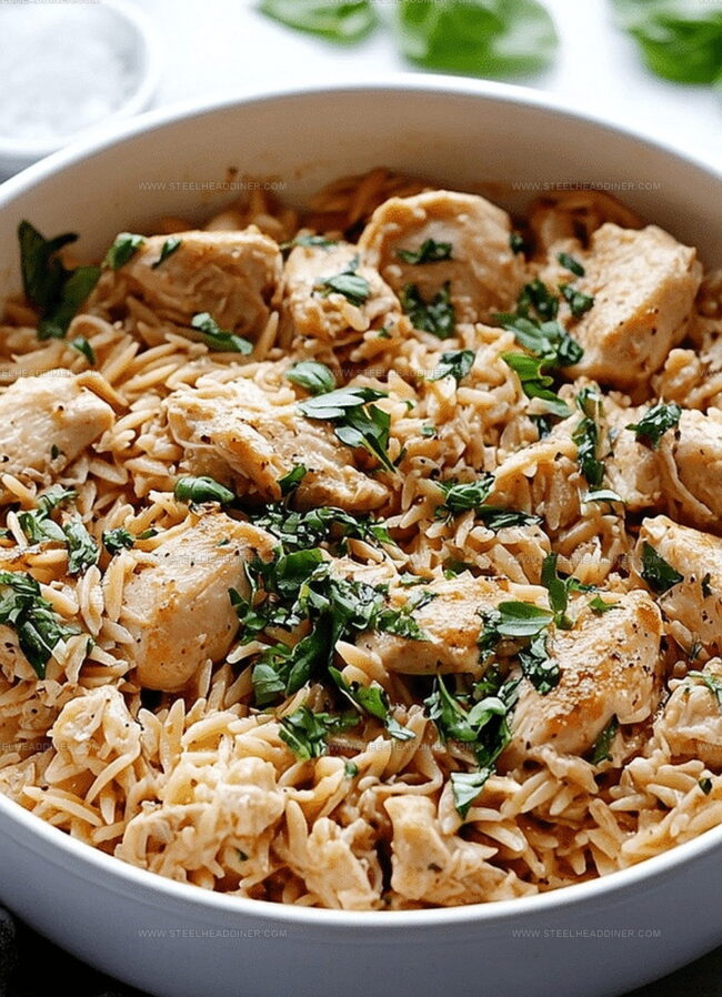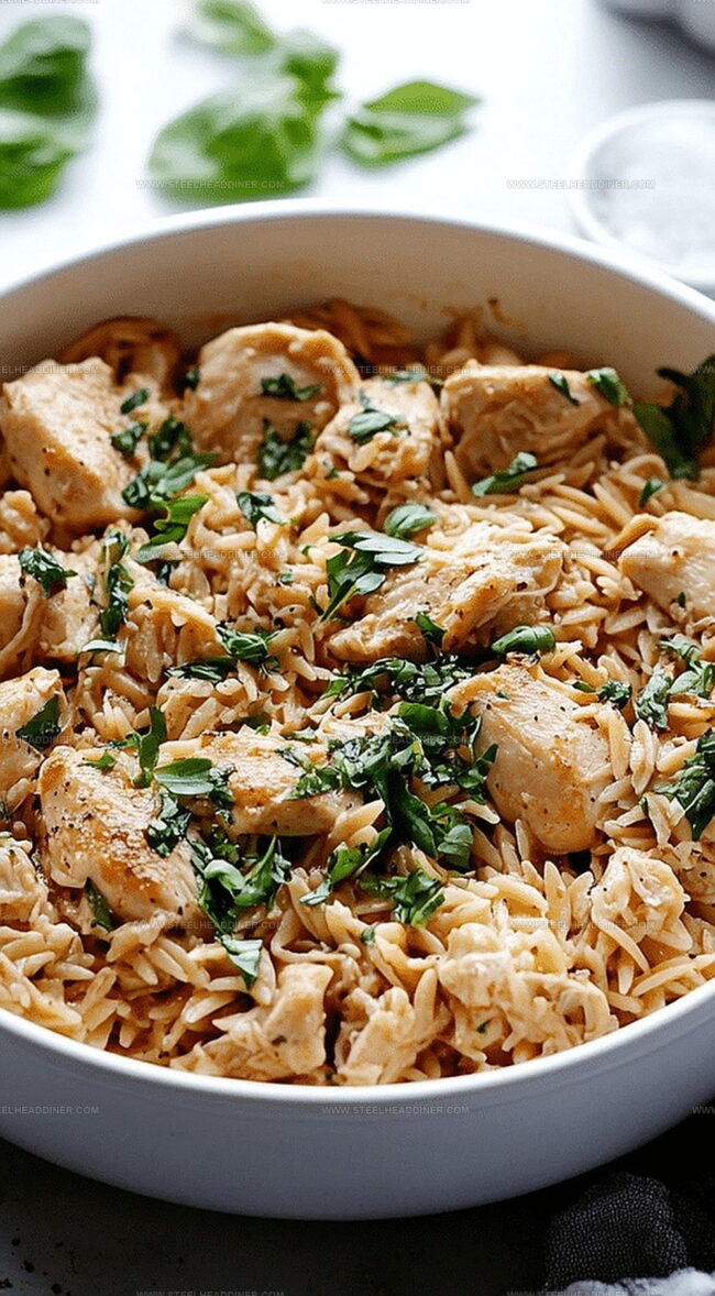 Reduce heat to a gentle simmer. Add back the cooked chicken along with:Cook until the orzo becomes perfectly tender and most of the liquid is absorbed, creating a creamy and comforting dish.