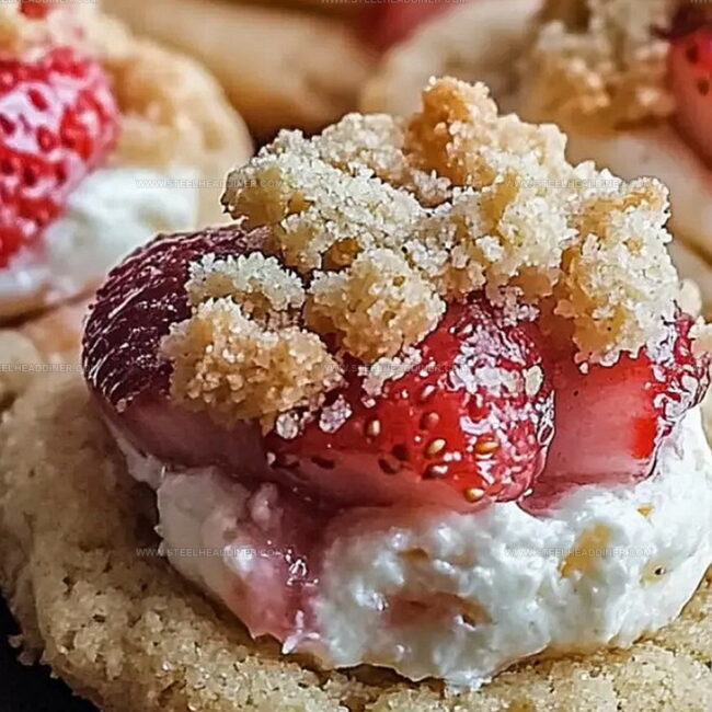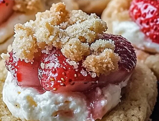 Soft, pillowy cookie bases cradle luscious cream cheese swirls and fresh strawberry essence.