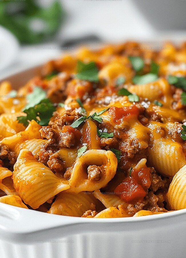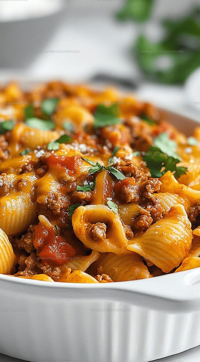 pasta shells cradle seasoned ground beef, creating a perfect vehicle for zesty taco spices and creamy cheese.