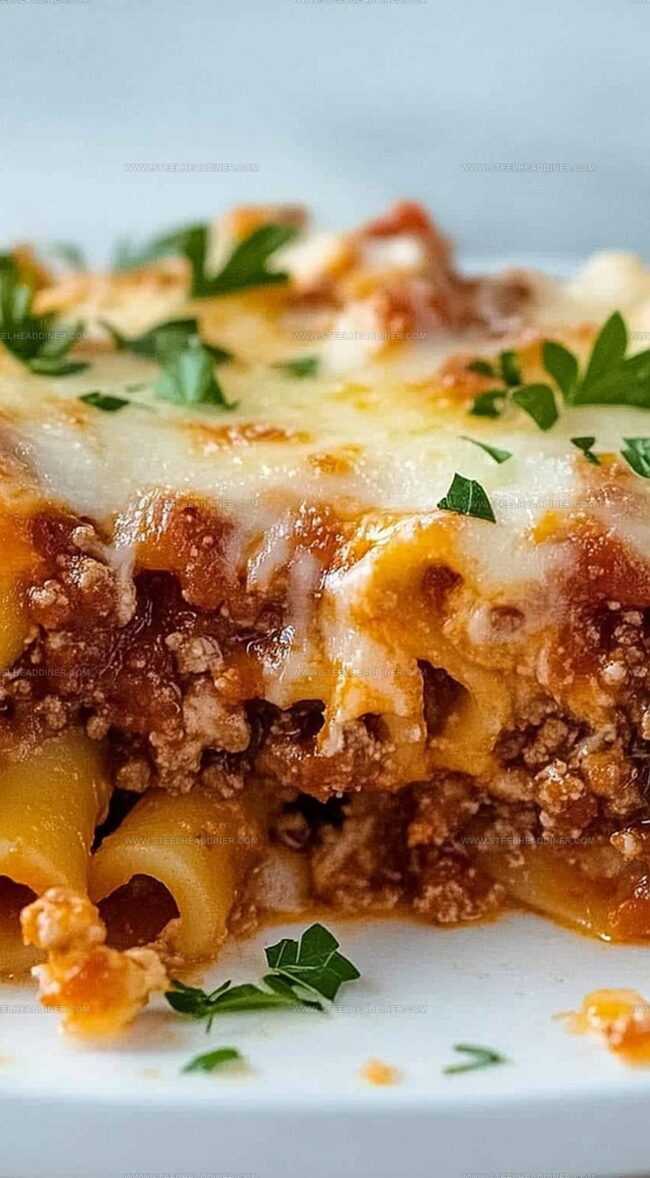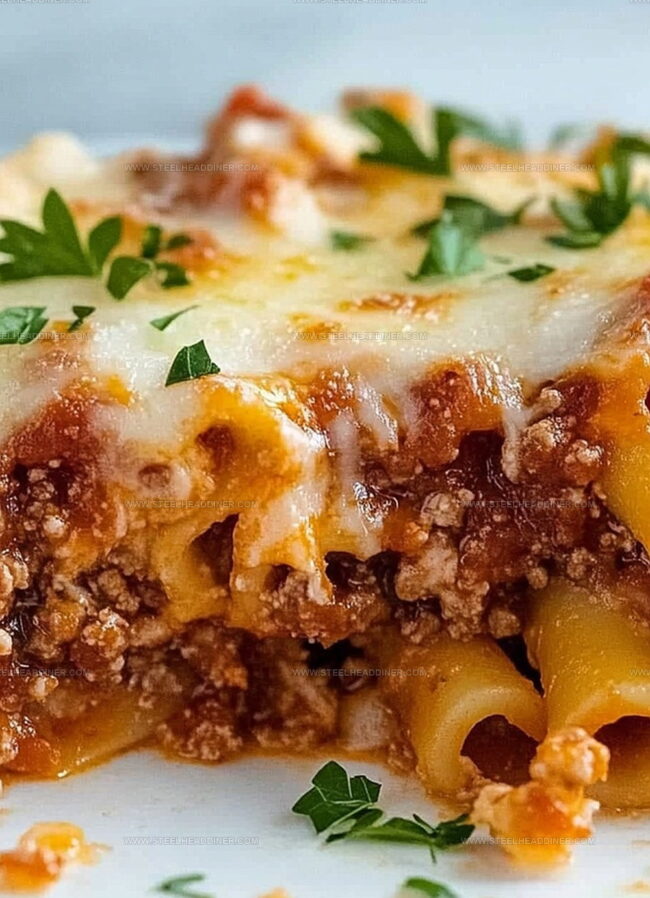 Creamy cheese layers mingle with robust pasta and hearty sauce in a dish that screams indulgence.