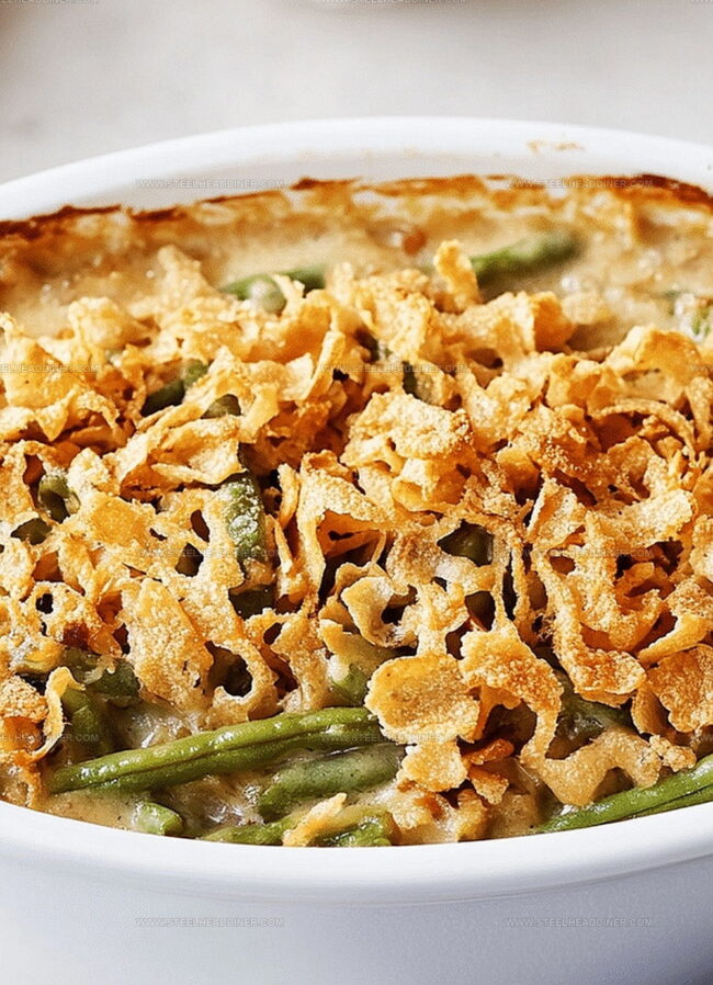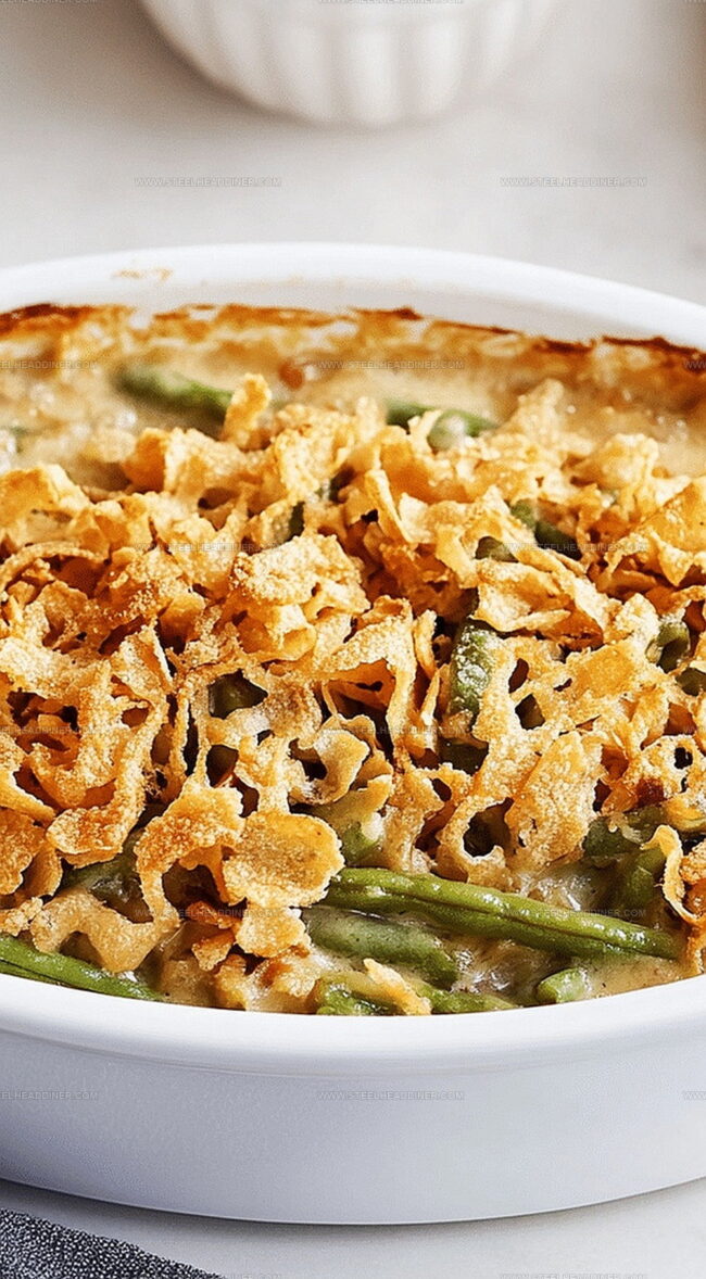 Comfort arrives with this traditional green bean casserole that whispers memories of cozy family dinners.